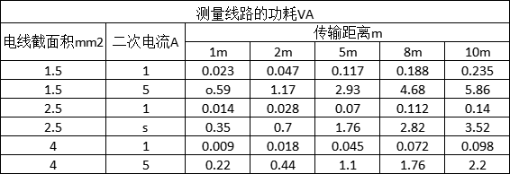 表1 電流互感器測量回路的功耗