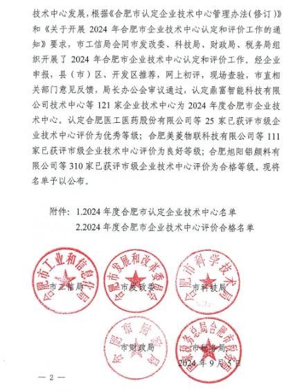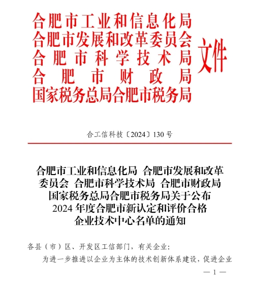 9月5日,合肥市工業(yè)和信息化局公布了《2024年度合肥市新認定和評價合格企業(yè)技術(shù)中心名單》,安徽得潤電氣技術(shù)有限公司榮膺在列,成功入選。